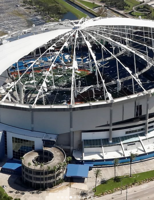 Over 3.3 million people experienced power outages, while 18 inches of rainfall poured overhead. Wind gusts reached speeds over 100 miles per hour; ripping the roof off Tropicana Field, the Tampa Bay Rays’ baseball stadium.