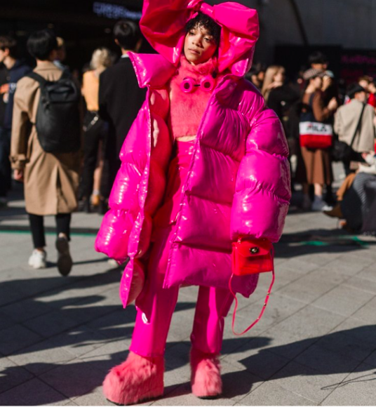 Despite the weather being somewhat chilly in Seoul, the people were still drenched in warm and vibrant colors — especially evident in their hair and makeup styles. When it comes to high fashion, neon hair and makeup may not be very common in other parts of the world, but for Asia it is rooted in their pop culture. Rumor has it that when K-pop stars would get ready to release an album, they would dye their hair a different color to give their fans a heads up. For these stars, it is a way of changing up their appearance based on the vibe of their new songs. Similarly, Seoul show-goers also use the bright colors to take their looks to the next level as well as let their own personal flair shine through.