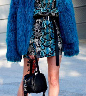 Whether it was an all-black ensemble or an outfit drenched entirely in neon, show-goers managed to make the monochromatic trend anything but dull. One way to make this look a little less daunting would be to try breaking it up with accessories or using different materials.