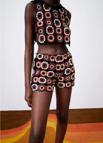 These shorts from ZARA are amazing because they are breathable and cute. They also are not going to break the bank for someone who is on a budget. They could be styled in many different ways, like with a baggy graphic tee or with a bikini top for the beach. Zara has a ton of different other crochet items on their website as well with a variety of colors and styles!