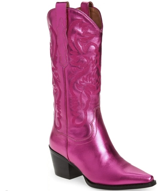 A newer trend, cowboy boots, have been all over the fashion scene! They can be ankle height, mid-rise, or tall. You can really make them stand out and elevate a look by picking colored cowboy boots. You can also go for the basic black or brown.