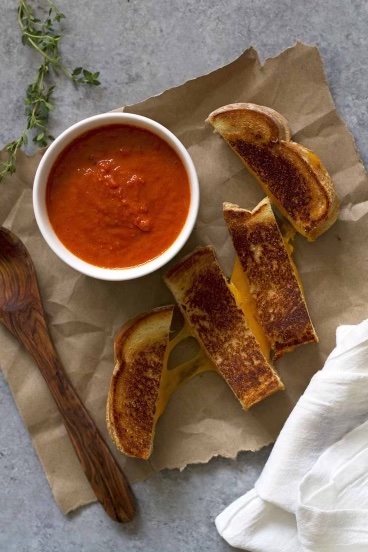 Snow is falling and the frigid winter air is cold enough to bring a pinkish glow to your cheeks and nose. One of the best ways to spend a snow day — aside from sledding and building snowmen, of course — is to enjoy a warm bowl of creamy tomato soup with a crispy grilled cheese sandwich. There’s (almost) nothing more nostalgic than this. Not the biggest fan of tomato soup alone? Try topping it with a dollop of sour cream or plain greek yogurt for a fun twist!