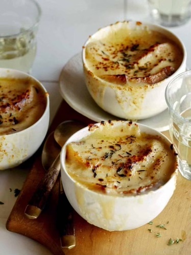The cold weather makes everyone want to cuddle up in bed or on the couch in their coziest pajamas and blankets as they spend the day binge-watching their favorite shows or movies. Besides, the year is coming to a close, and some of our Netflix favorites will be removed in the coming months. A warm crock of french onion soup, topped with a thick layer of caramelized cheese is the perfect accompaniment to your movie marathon! It’s savory and decadent and everything you could want for a day full of relaxation and indulgence.