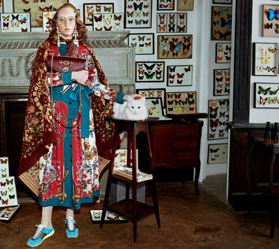 “Gucci Collectors” portrays Gucci’s tribe of outsiders as a group of passionate collectors of various art and objects. The brand says “The inspiration for the campaign comes from those eccentric personalities who passionately seek out paintings, antiques, rare objects and other vintage collectibles.” Rather than call it ‘hoarding’ Gucci suggests that it is an “appeal of idiosyncratic curation” and that these so-called ‘odd-balls’ are frequently the most interesting and creative people thus stressing that true individuality is a badge of pride.