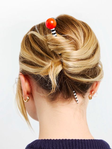 Whether you forgot your hair tie at home or you want to change up your hairstyle at the gym, using a hair stick is a quick and easy way to put your hair up without the damage. By twisting your hair in on itself and using a stick to hold it together the tight squeeze that a hair tie would put on your locks is removed. Plus, any stick-shaped item works for this hairstyle, which you probably already have at home!