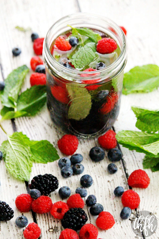 Add a handful of raspberries, blackberries and blueberries to your water. Raspberries are full of fiber, which helps the digestive system. Blackberries are packed with vitamins and can even boost oral health.