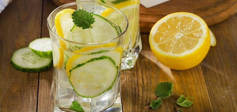 Adding thin cucumber and lemon slices to your water is a great way to start your day. It can minimize belly bloating as well as provide an energy boost. When adding the cucumber slices, be sure to leave the skin on because that is where most of the vitamins and minerals come from!