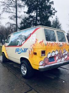 Some of the merch that was given away were t-shirts that said “Free Spirit,” stickers, air fresheners and of course rain ponchos since it was pouring at the time of the giveaways. However, the rain did not stop the crowd from showing up. To keep spirits high (and free), the van bumped a soundtrack of all songs Khalid.