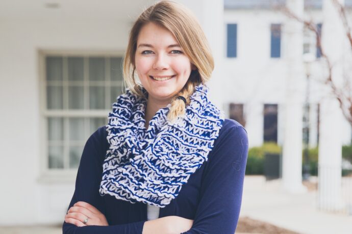 Senior civil engineering major Alison Willie, along with her family and close friends, knit each and every scarf by hand. The proceeds from the scarves go directly to kidney cancer research and awareness.