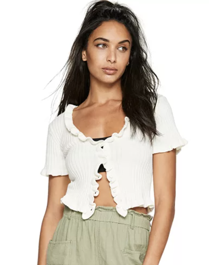 Short-Sleeve Ruffled Cardigan
