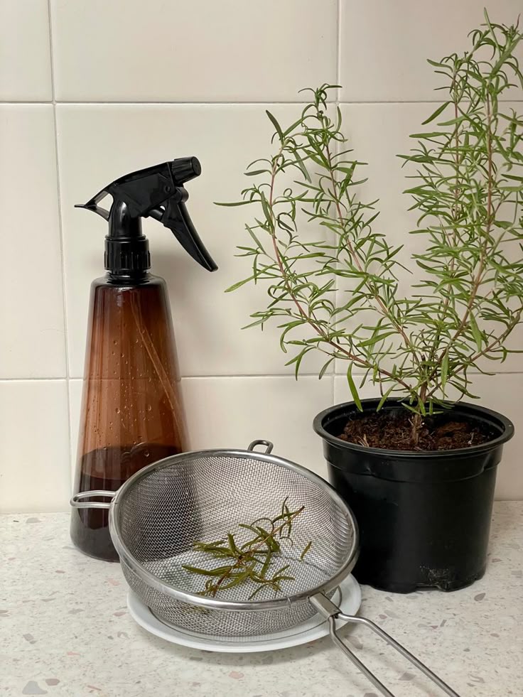 - Strain into spray bottle, any leftovers can be stored in the fridge for up to two weeks