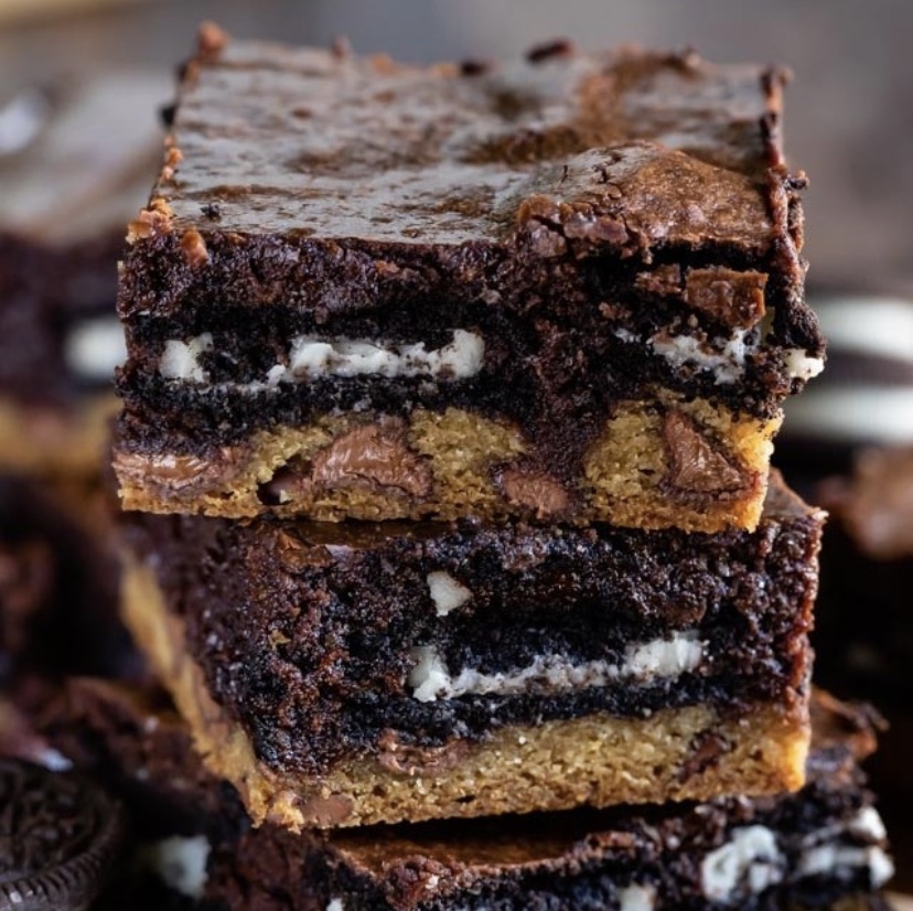 For all the girls who crave sugar and chocolate, this brownie is a three-layer monster made up of chocolate chip cookie, oreo and brownie all baked to perfection.