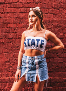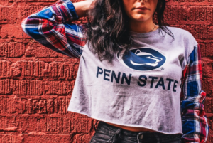 Ellie Rosen is elevating game day style one snip at a time. Whether you want a custom t-shirt, tube top, bodysuit, hoodie or even a custom scrunchie, Rosen is your go-to girl. The senior advertising major started snipping tees her freshman year at Penn State and hasn’t stopped since.