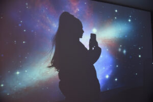 “blazed” featuring Pharrell Williams emphasizes the idea that the “universe is so vast” with its upbeat and bouncy tone. This room engulfs you into a 360-degree galactic night sky with bright colored streaks and glittering stars projecting around the room as you enter.