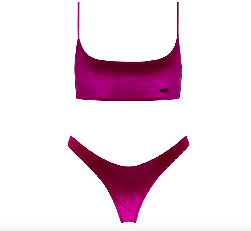 This soft Italian velvet bikini set is a one of a kind statement suit that will definitely look great on the beach or in Instagram pictures— shop it here.