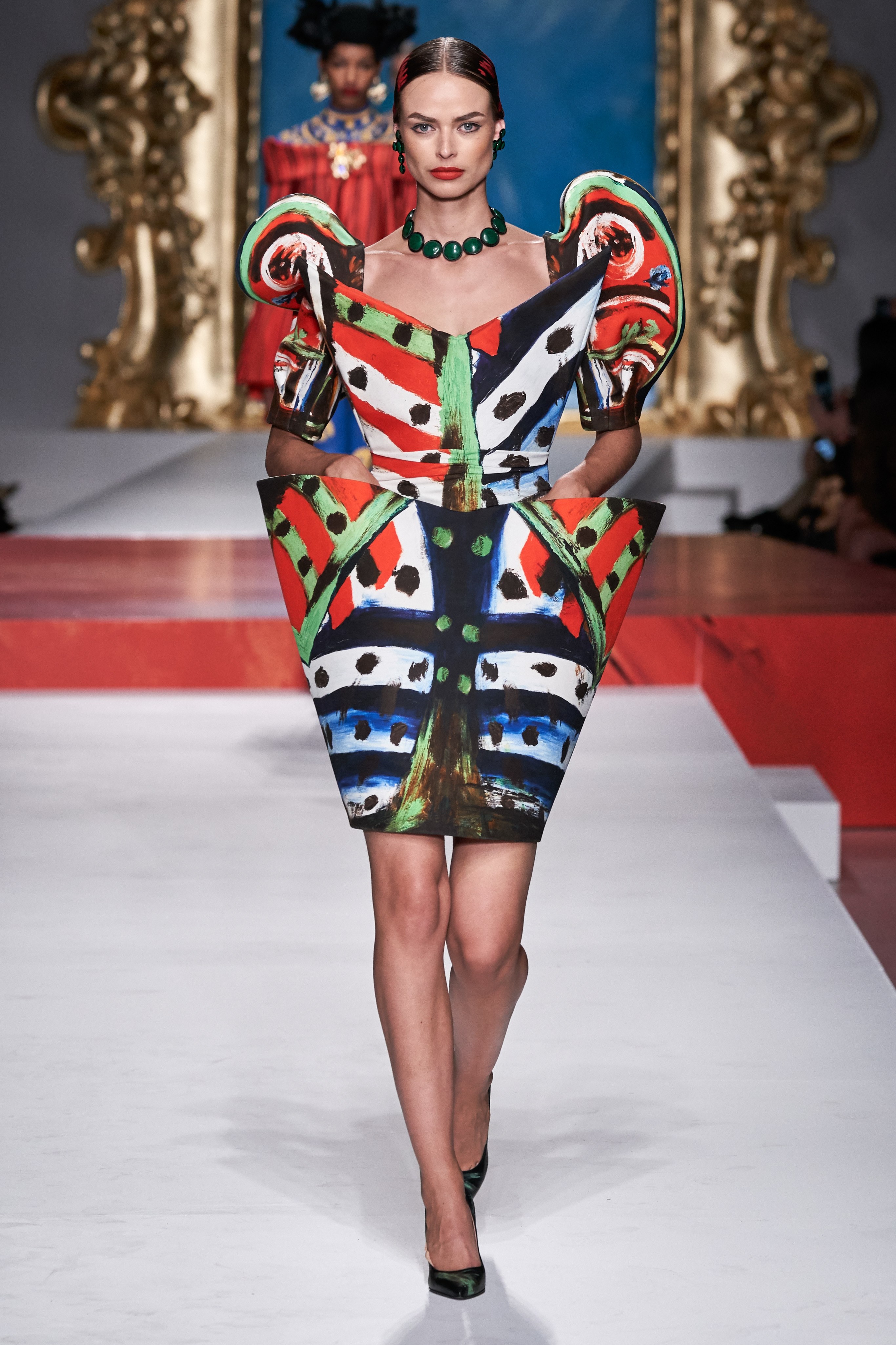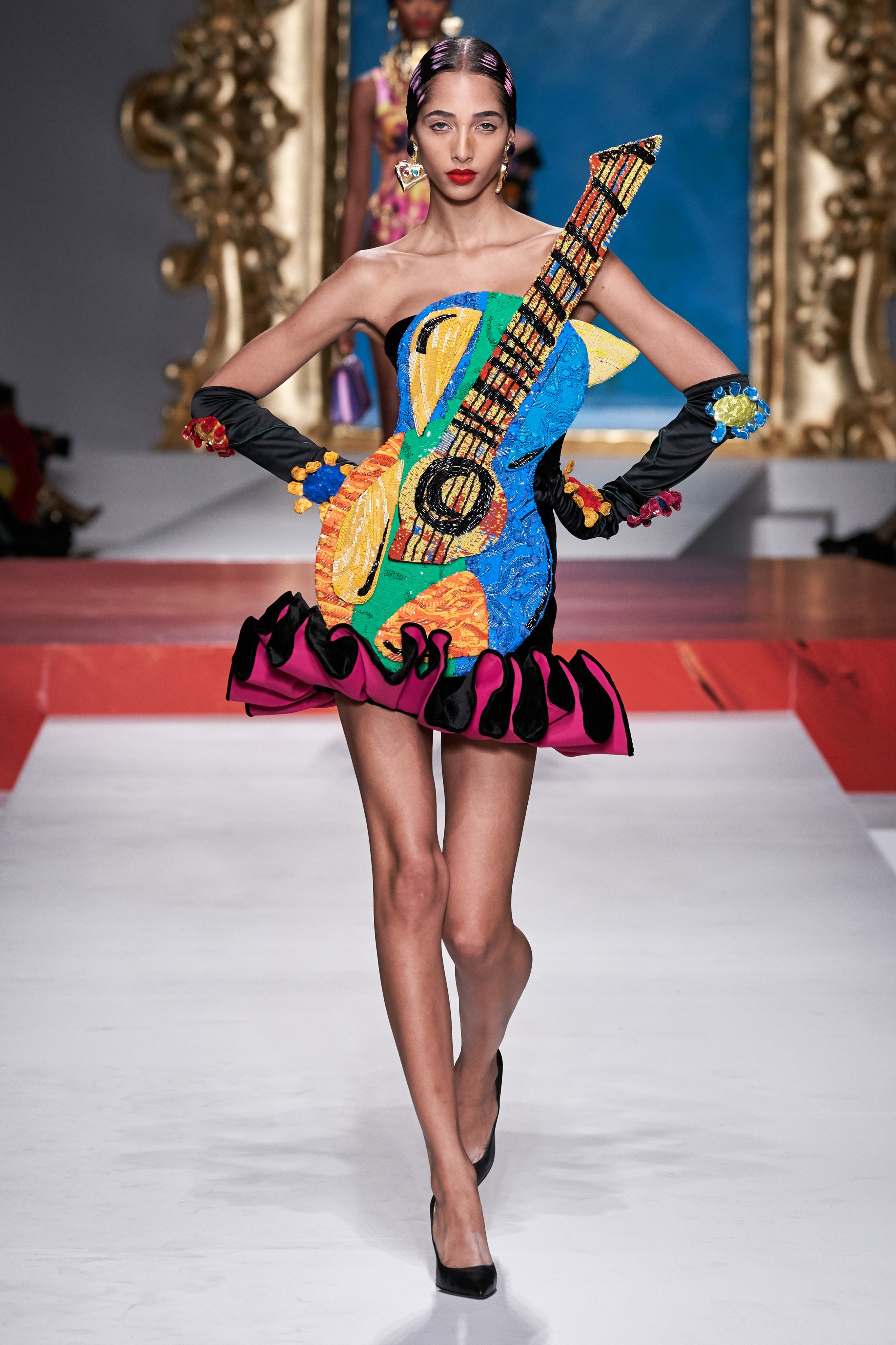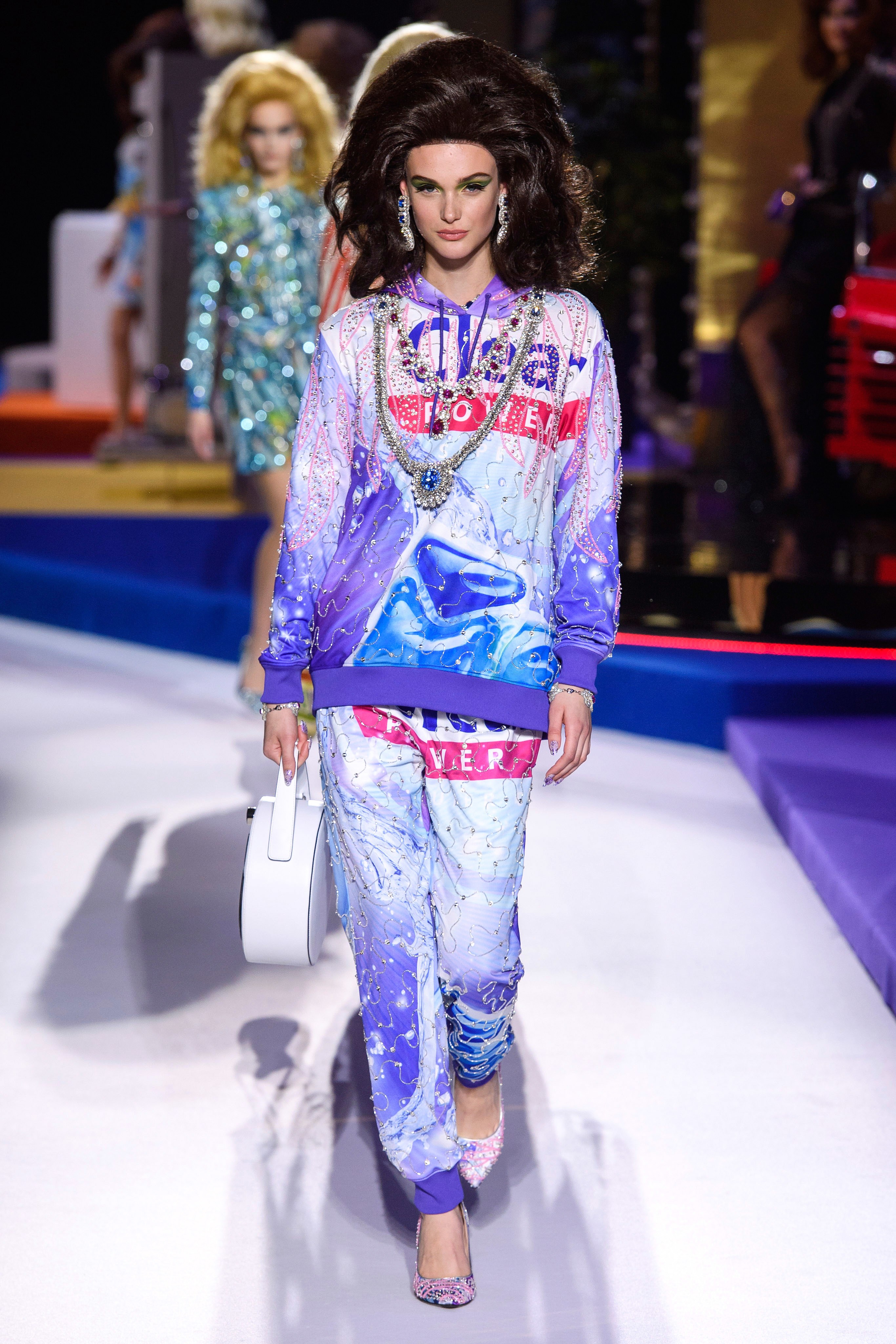 In 1983, Moschino’s vision came to life in Italy by the late founder, Franco Moschino. The label soon became famous for innovative, colorful and eccentric designs. Imagine the 2019 Met Gala theme “Camp” — that’s essentially the motto and mission of the brand: “playing and having fun” while staying grounded.