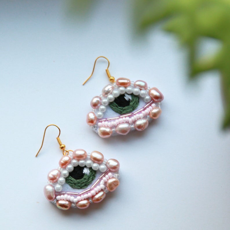 For a less-traditional option, browse through Annie O’Rourke’s Dublin-based Etsy shop, Think Threads. She creates handmade and sustainable accessories like these unique hand-embroidered Eye Earrings.
