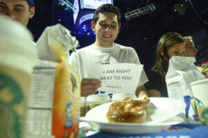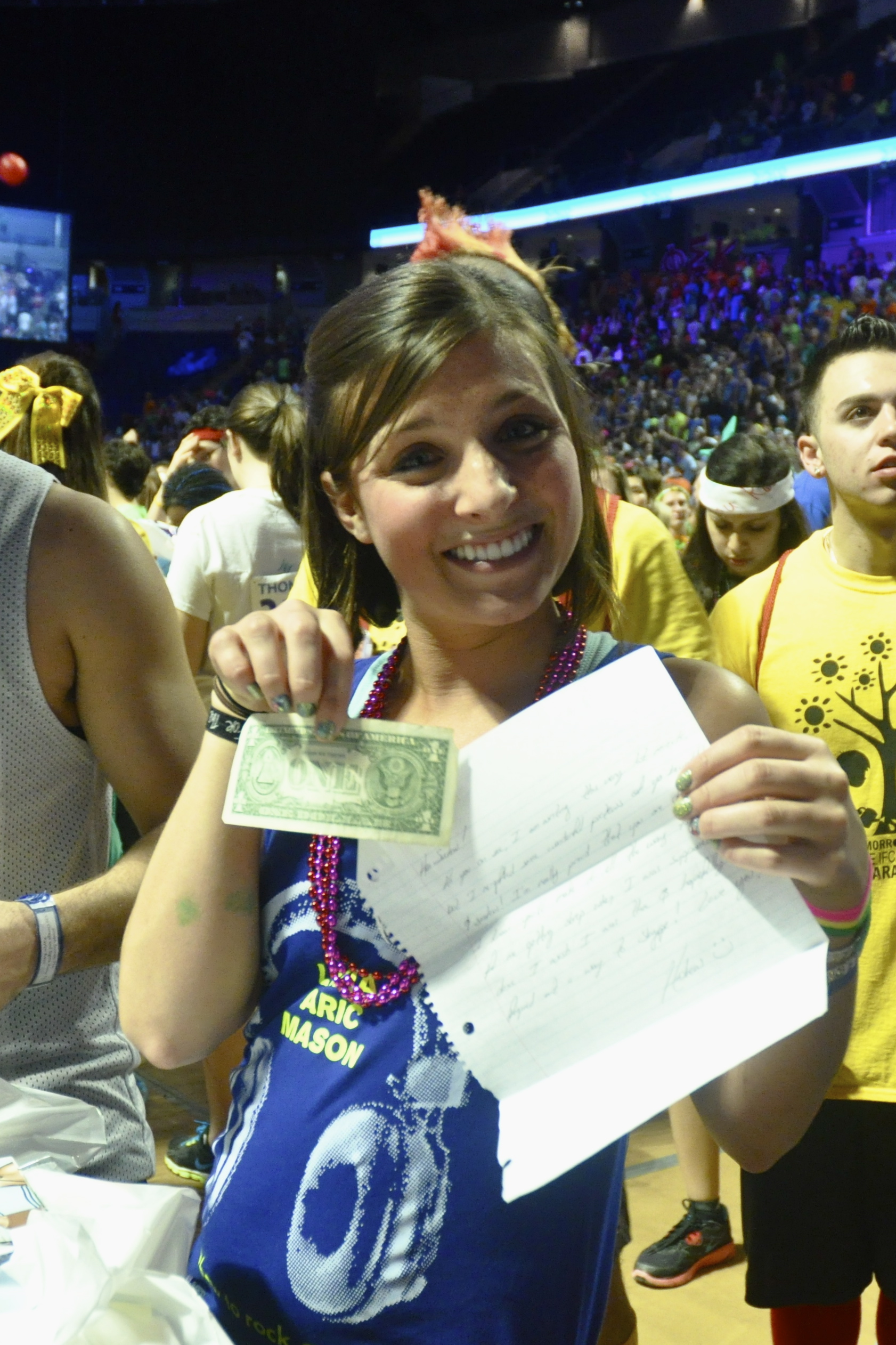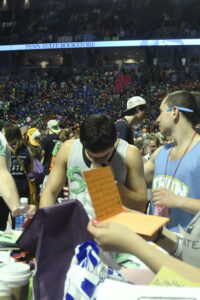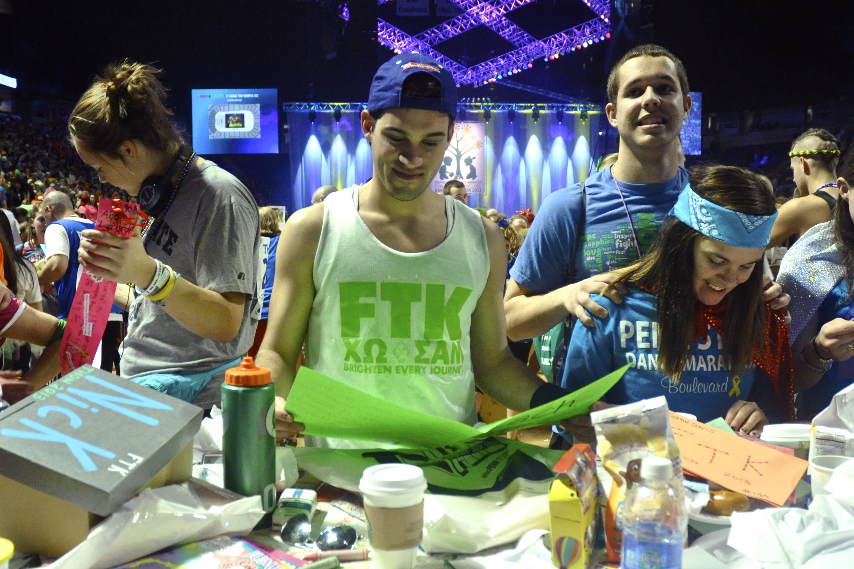 It’s the little things that help dancers get through THON- snacks, socks, friends visiting from the stands…and mail call. We went down to the floor after mail was distributed to hear about the letters received.