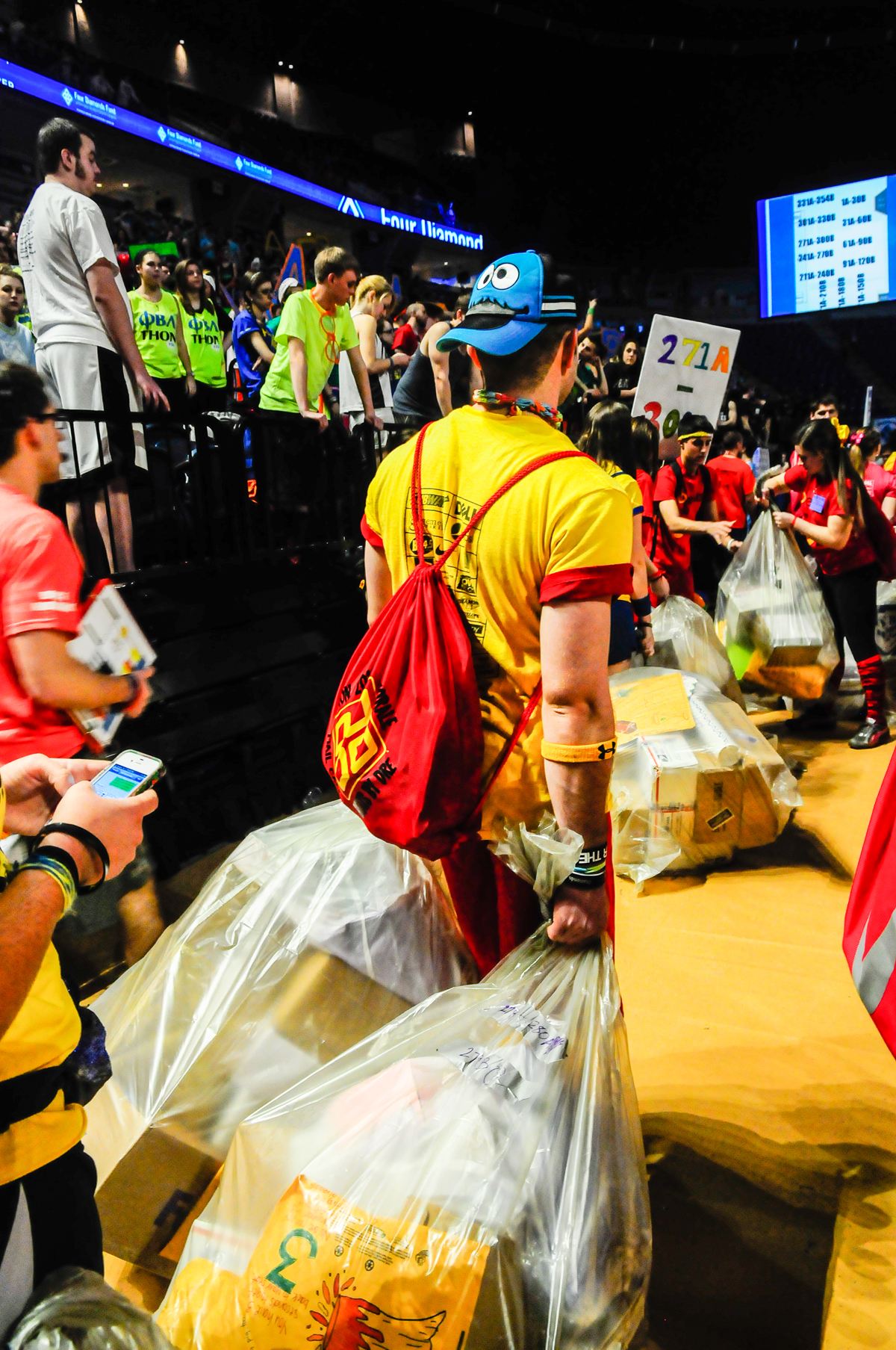 Forty-six hours is a long time to do one thing, let alone stand, so the dancers appreciate any items to keep their minds on a task or toy and off of how much longer they have to stand. Joel Smith, a dancer for Alpha Zeta, got a ton of water guns to keep him occupied (and challenge some little ones to a water war) and enough candy to keep him in a sugar rush.