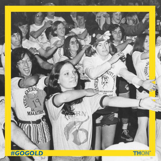 But THON hasn’t always been as big as it is now. First established in 1973 with the title “Dance Marathon” (it later adopted “THON” in 1987), it was held in the HUB Ballroom, with a mere 78 dancers split into 39 pairs. Dr. Cris Guenter, one of those 78 people, shared her experience in an interview for a THON Alumni Reunion Series video on Facebook.