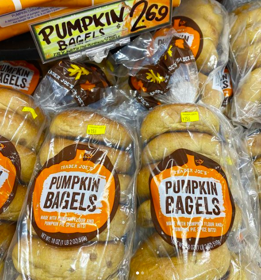 These pumpkin bagels are another breakfast must-have and can be paired with your typical cream cheese or if you’re feeling extra Trader Joe’s pumpkin cream cheese is definitely another great option.