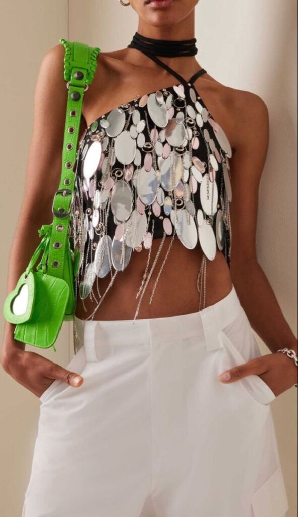 Dare to step outside your comfort zone? Add mesh or lace elements with a sleek, slicked-back hairstyle. Boost the look with pointed shoes to take command. For an extra touch of drama, opt for flare bottoms that create a captivating swaying effect as you own the night.