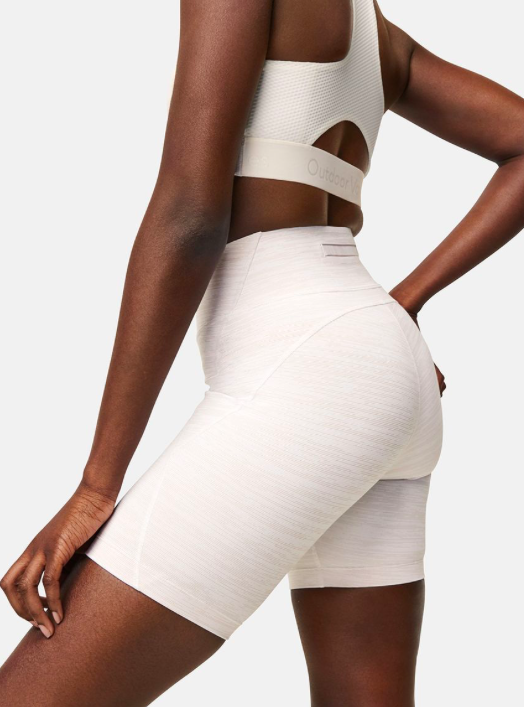 Outdoor Voices brings sustainability and quality to their products that are designed for both performance and fun. OV offers fashionable activewear from exercise skorts and dresses to trendy biker shorts, as seen above. Shop the look here.
