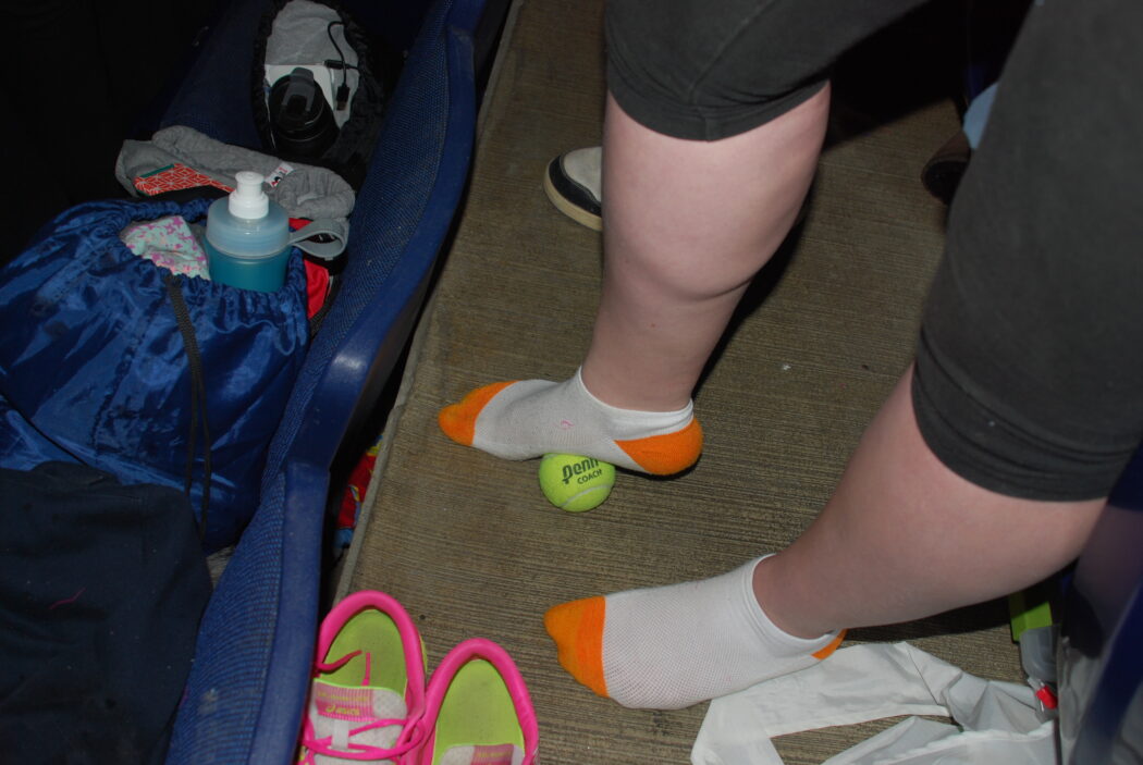 The solution: Grab a tennis ball (there are only a million nearby), take off your shoes one at a time, and roll out each foot on the tennis ball. Ahhhh.