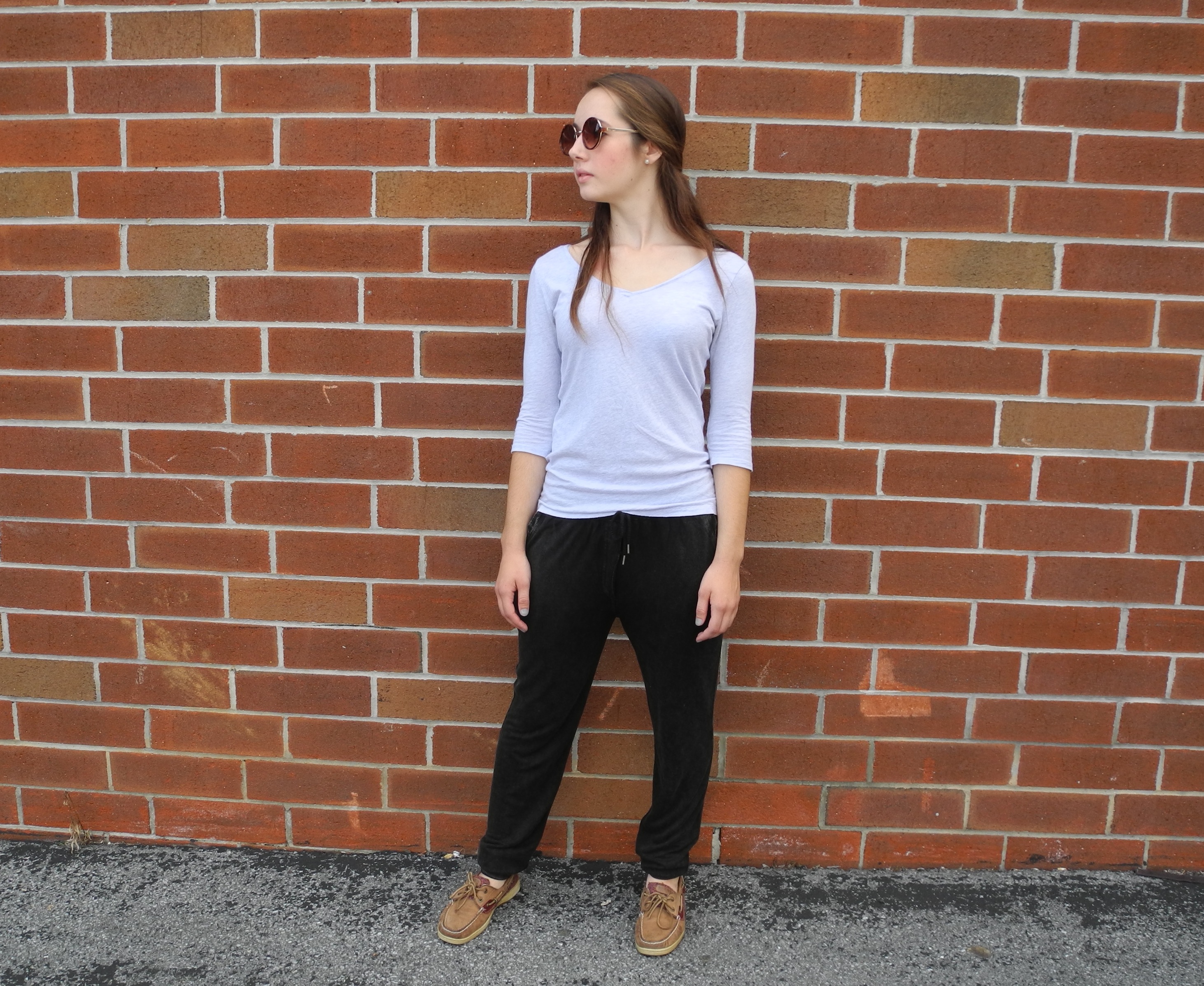 As I’m sure you will now take notice, girls on campus wear their joggers many different ways; some pair their threads with a basic tee shirt and sneaker wedges while others rock them with a dressier look. Either way (and with comfort ensured), they look fashionable and put together.
