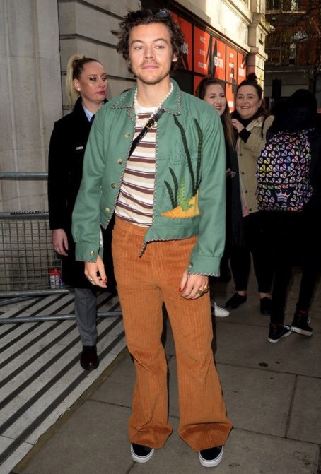 Maybe you want to channel your inner Harry Styles. Do this by adding a few unique pieces to your favorite pair of corded pants to create a statement outfit that will definitely grab the attention of others.