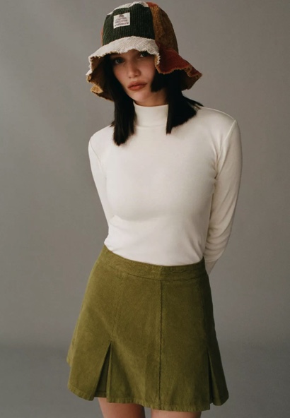 One of corduroy’s best features is how it can be dressed up and down. A corduroy skirt can create a trendy, fancier outfit if you’re stuck on what to wear for a nice night out. Because corduroy is a statement already, add a simple top that can be tucked into the skirt. Now you have a classy and fancy outfit for your next family dinner.