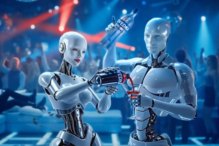 One of the ads in the Super Bowl that stood out to viewers was the Svedka ad. The ad featured two robots that resembled a female and a male who were at a party enjoying Svedka martinis. In the background, behind the robots, there were humans dancing, enjoying the party.