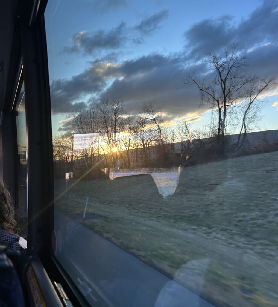 The dark bus fostered a nice sleeping area, but nothing brought me to sleep. Instead I listened to Noah Kahan’s album “Stick Season” front to back and Amy Poehler’s first episode of “Good Hang.” After a while, everyone on the bus woke up.