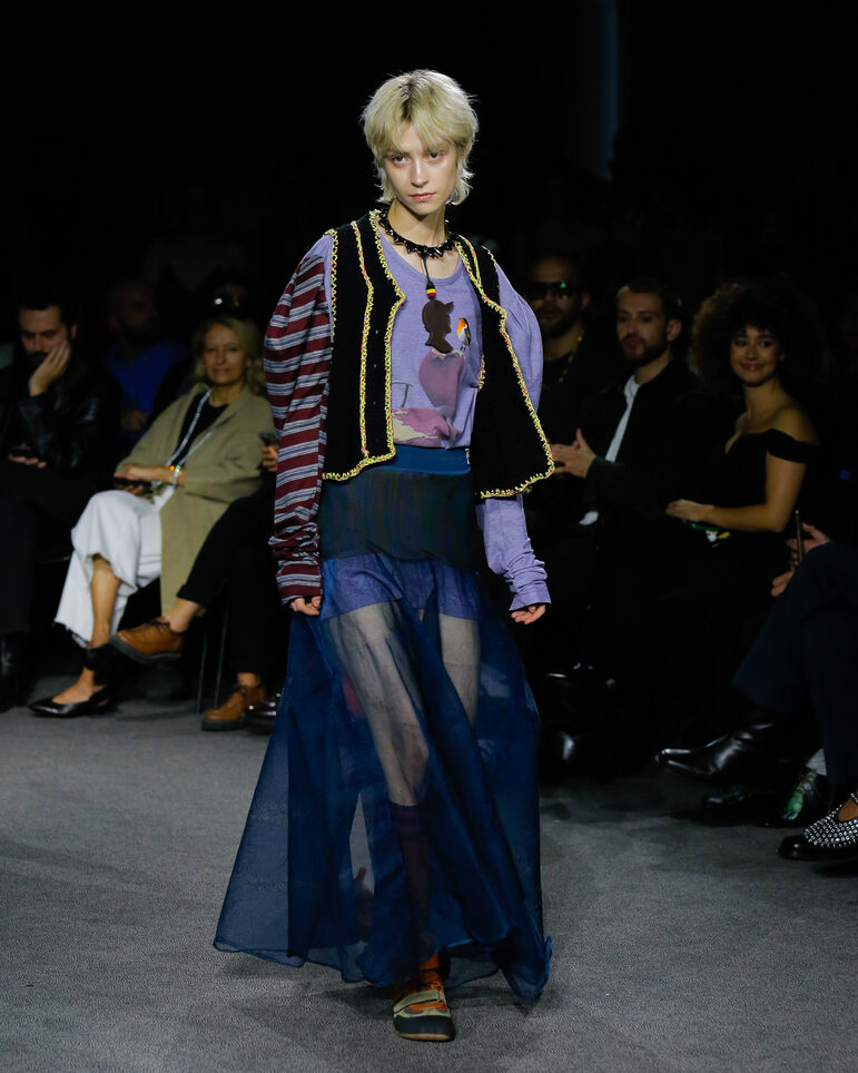 Andreas Kronthaler put together looks that at first glance, seem like they are incohesive and random. However, that is not the case. They tell the story of Vivienne’s life, which was one of trial and error. It took decades for her work to be taken seriously, and the pieces effectively show how perplexing her journey was.