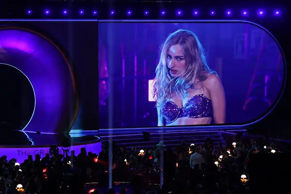 The highlight of the Grammy’s for me was the cinematic switch between Addison Rae and KATSEYE’s performances. Rae began the slew of the performances put on by the nominees for the best new artist category with her hit song “Fame is a Gun,” wearing a bedazzled purple trench coat that was then removed to reveal a matching bikini underneath. Controversy online over her live singing abilities after her performance have been plaguing my timeline, but one thing you can always count on Rae for is her spell-binding stage presence and impressive dance breaks. After Rae finished performing, viewers were immediately met with KATSEYE’s opening line of their hit song “Gnarly,” with member Yoonchae popping up in front of the camera. Their performance started in the backstage area where Rae’s ended, and followed them as they danced out to the Grammy’s main stage.