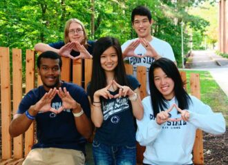 Penn State’s new brand campaign, “Penn State Lives Here” is being distributed around the Penn State campus this week. The new slogan replaces the most recent, “It’s Your Time.”