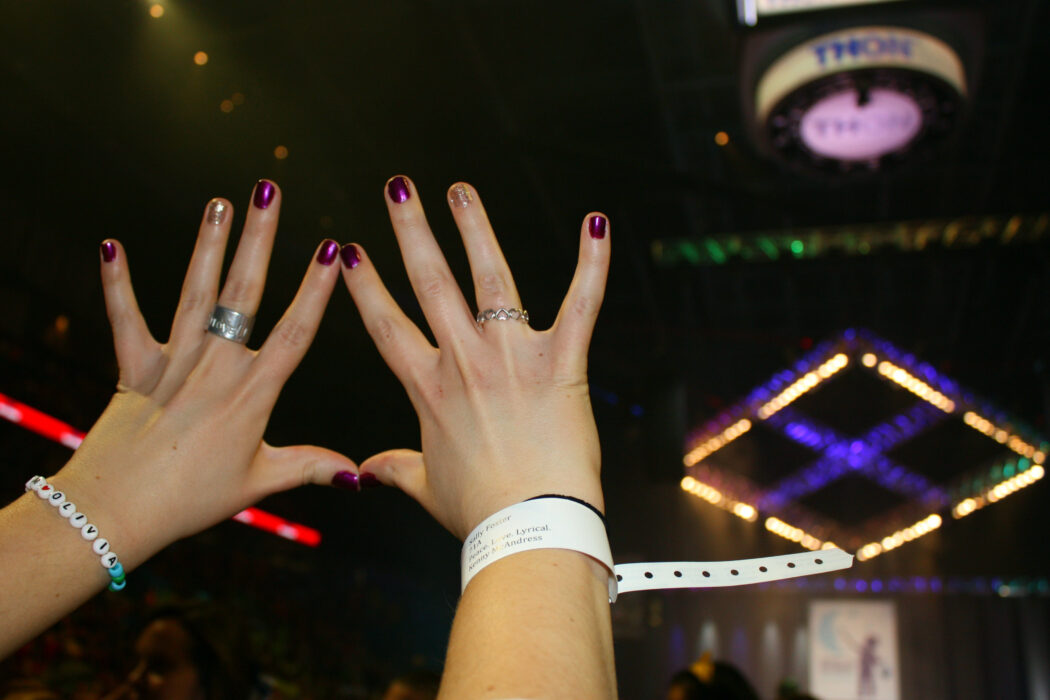 On any regular day, a rainbow tutu and pink and blue knee high socks wouldn’t necessarily be anyone’s go-to look. However during THON weekend no THON-goer should be caught without these two items.