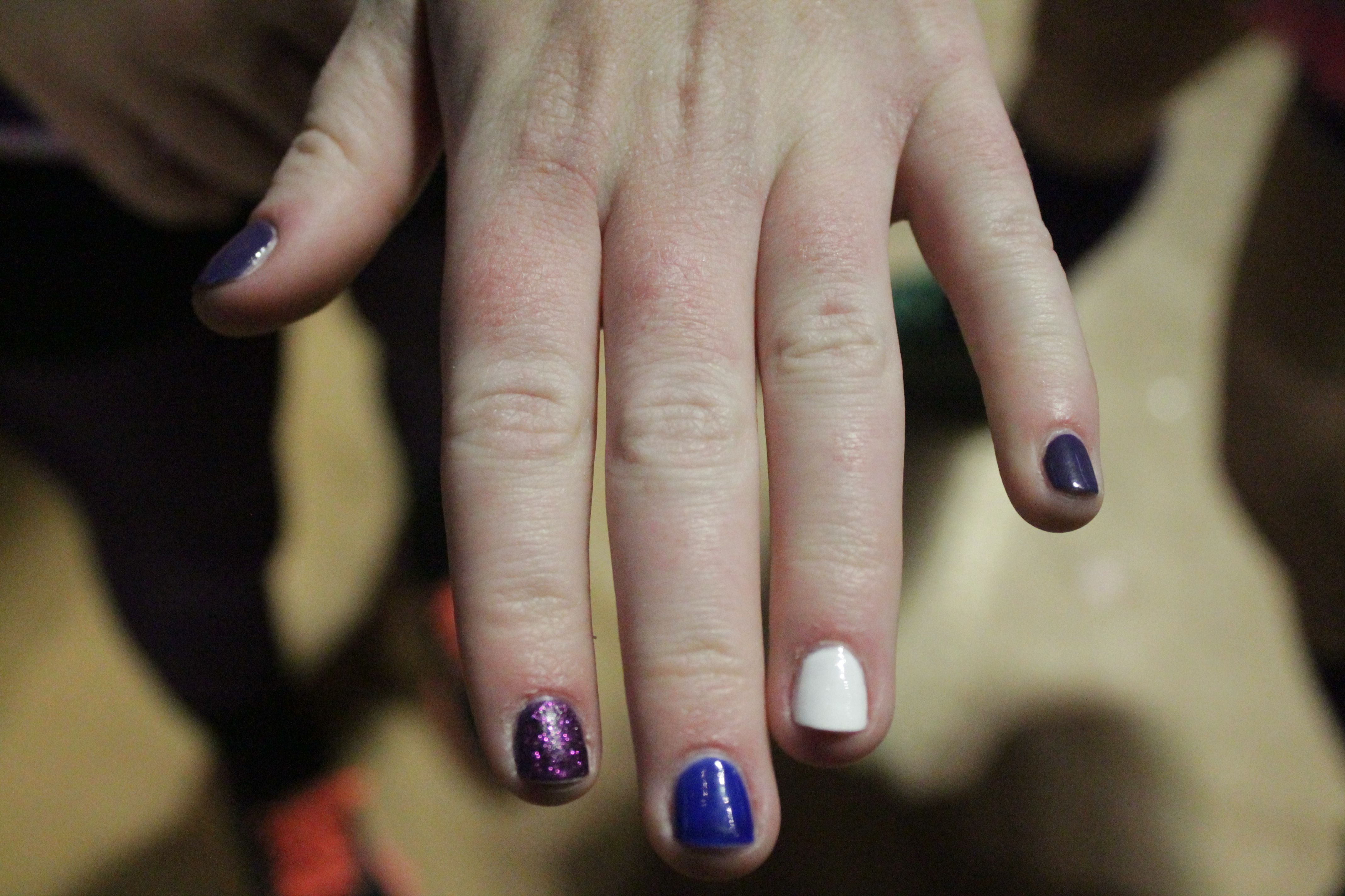6. Lauren McCauley (Public Relations) repped the purple of her committee with her different-colored purple nails with touches of glitter and a white accent.