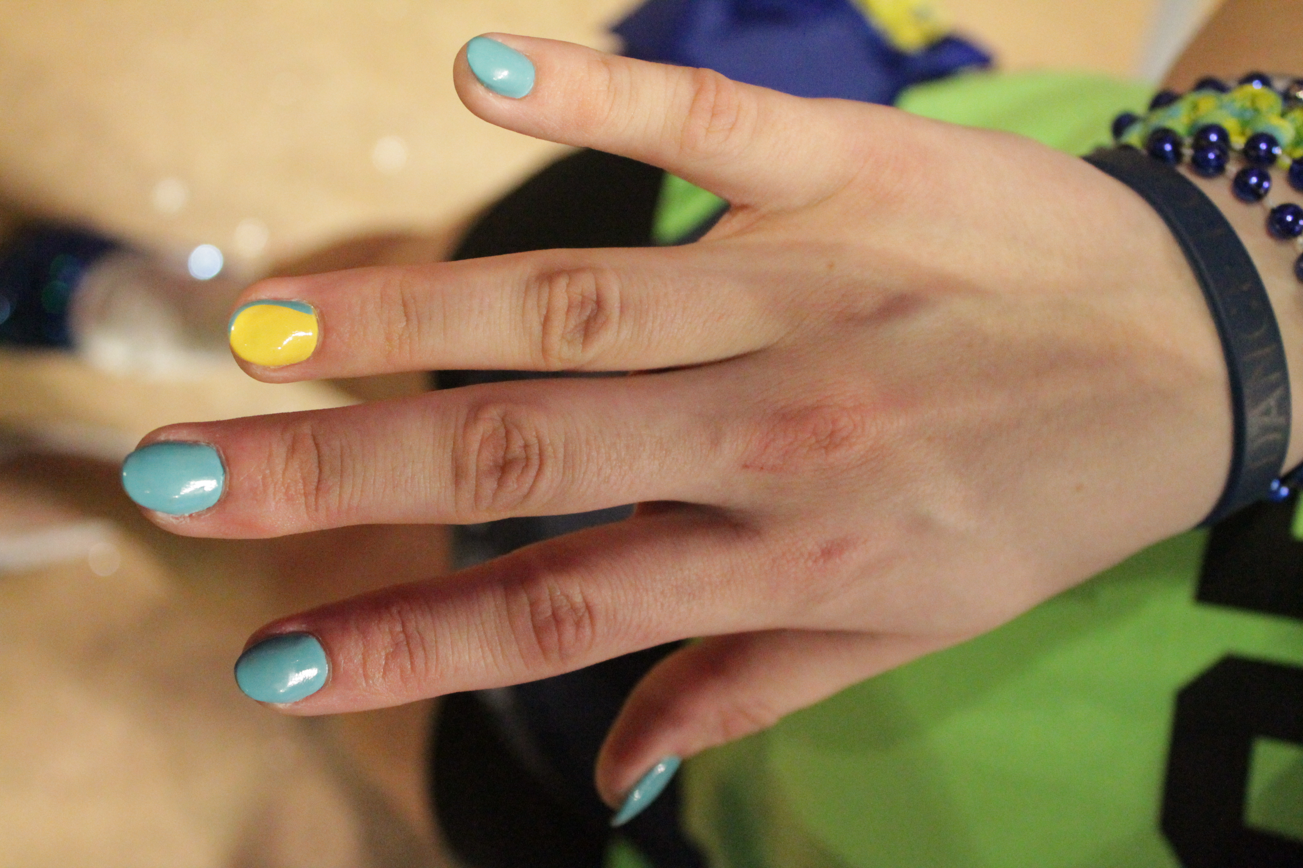 7. Jenne Lahov (Everyday) painted her nails robin’s egg blue with yellow to keep her org’s colors fully represented while she danced.