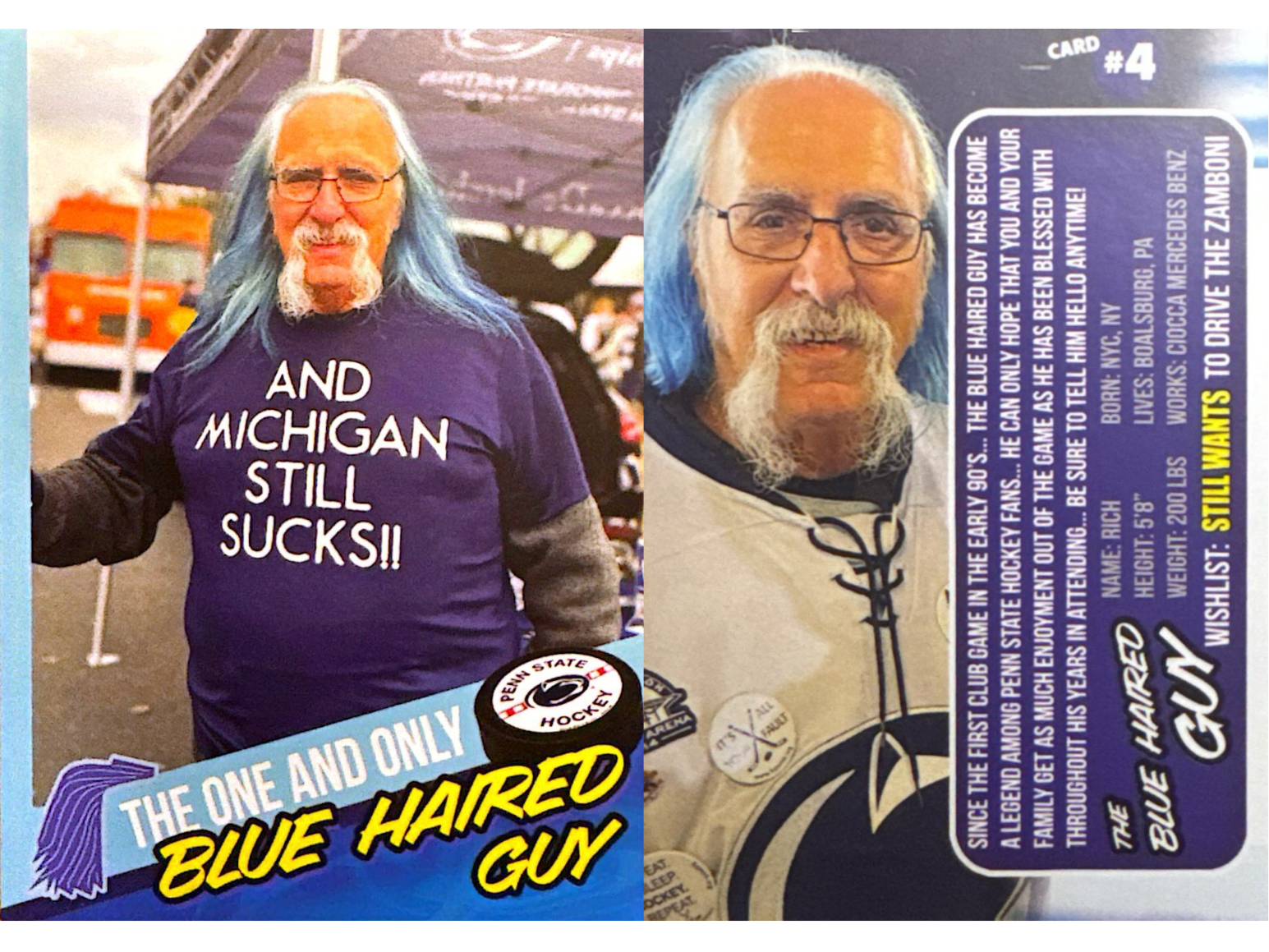 Seifert is more than a fan, he represents tradition. His game day outfit has remained unchanged since he first became a fan. Sporting a Penn State hockey jersey, his blue hair is what truly makes him stand out. Seifert shares that he originally used temporary dye. However, when consistently questioned about why his hair was not always blue, a friend helped him maintain the color year round.