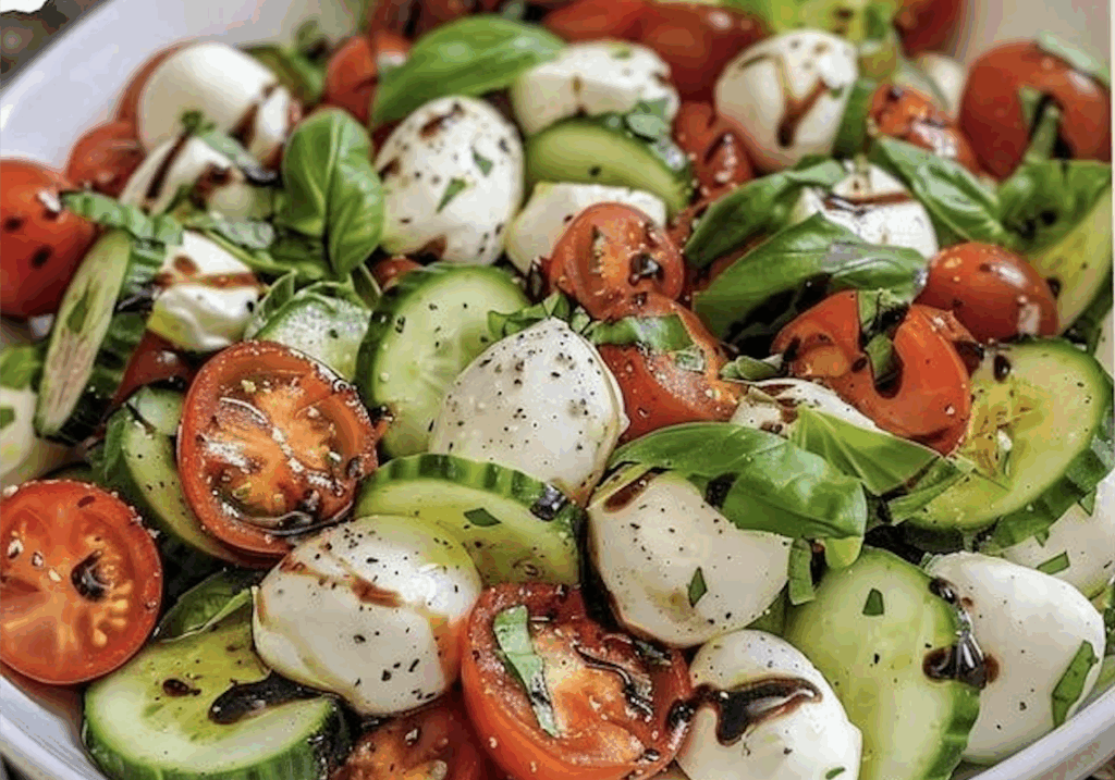 This tomato, mozzarella, balsamic glaze, avocado and cucumber deliciousness is the perfect post-work salad to eat before a more hearty dinner that follows. With tons of fresh ingredients and nutrients, this caprese-like salad is definitely a fan favorite.