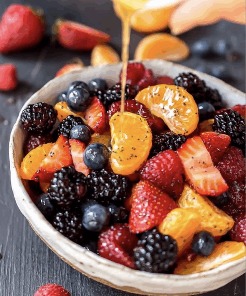This sweet, fruity sensation of berry freshness is the perfect mix for any occasion. The added layer of candy-like poppy seed dressing enhances any fruit salad, provided all by nature’s candy. Each bite leaves a splash of citrus and honey in the best way possible.