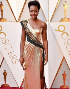 One of the trends of the evening was glittering gold. “Black Panther” star Lupita Nyong’O glistened like an Oscar award herself in a one-shoulder golden number with a black sash across her torso. Sandra Bullock also stunned in a high-neck gold and black gown. Tiffany Haddish honored her late father’s heritage by donning a traditional Eritrean gown.