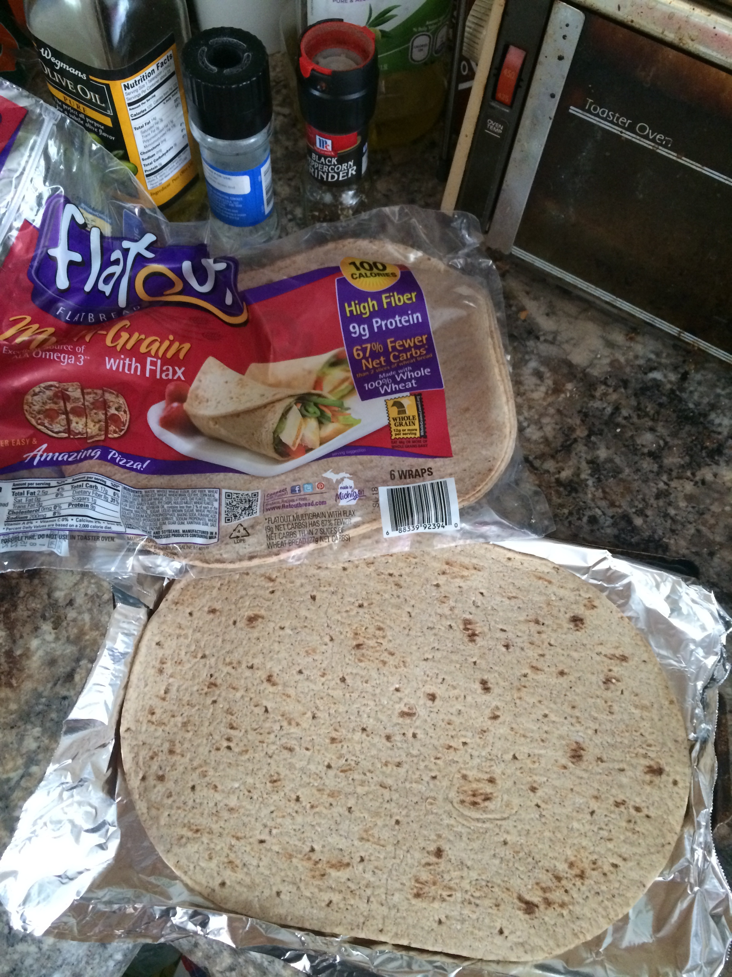 I used a toaster-oven to heat the wrap on the last step. If you don’t have access to a toaster-oven, preheat your real oven to 450 degrees before cooking your meal.