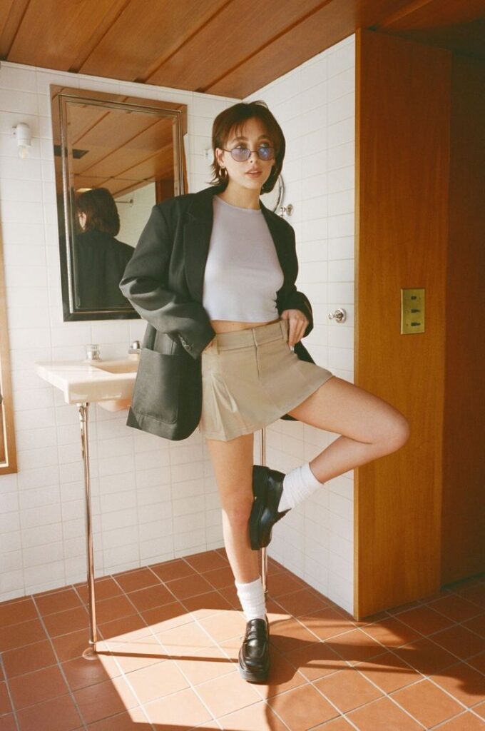 She is still a lover of her chunky shoes, trading in her hightop Doc Martens for pairs of loafers. Emma is now keen on involving layers, different fabrics and silhouettes into her looks. She plays into a more androgenous side, mixing both stereotypically feminine or masculine pieces such as button up shirts, oversized blazers or skirts.
