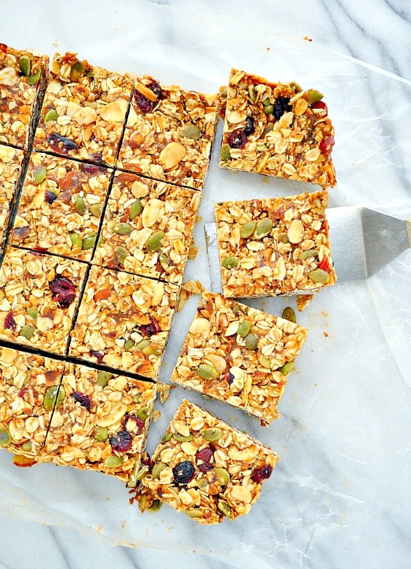 A perfect mixture of salty and sweet, these homemade granola bars are a great snack to make ahead and throw in your bag to munch on during the day!