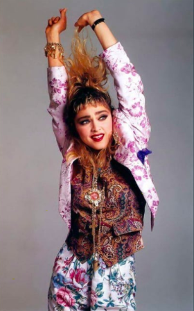 ‘Cause we are living in a material world and Madonna is a material girl! A fashion icon in the music industry, Madonna was always one to take risks when it came to her style. The Queen of Pop’s signature look is composed of short blonde hair, a red lip and thick eyebrows.