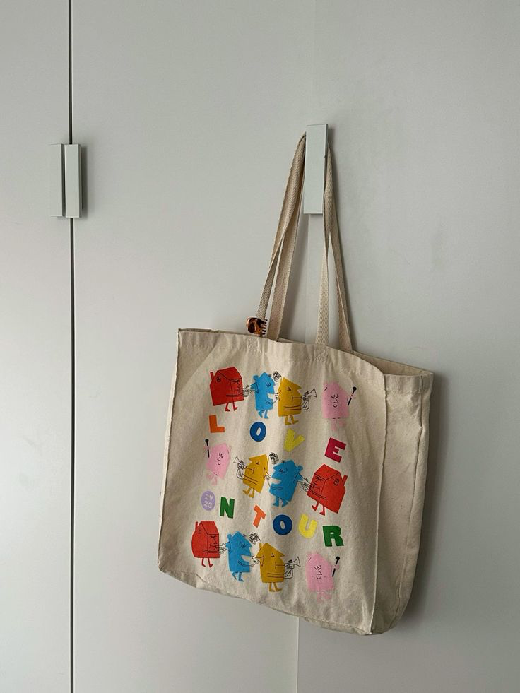 One of Harry Styles’ merchandise staples on the “Love on Tour” were tote bags, aligning with the themes of the three legs of his tour. They of course make great mementos, almost like walking posters from the concert.