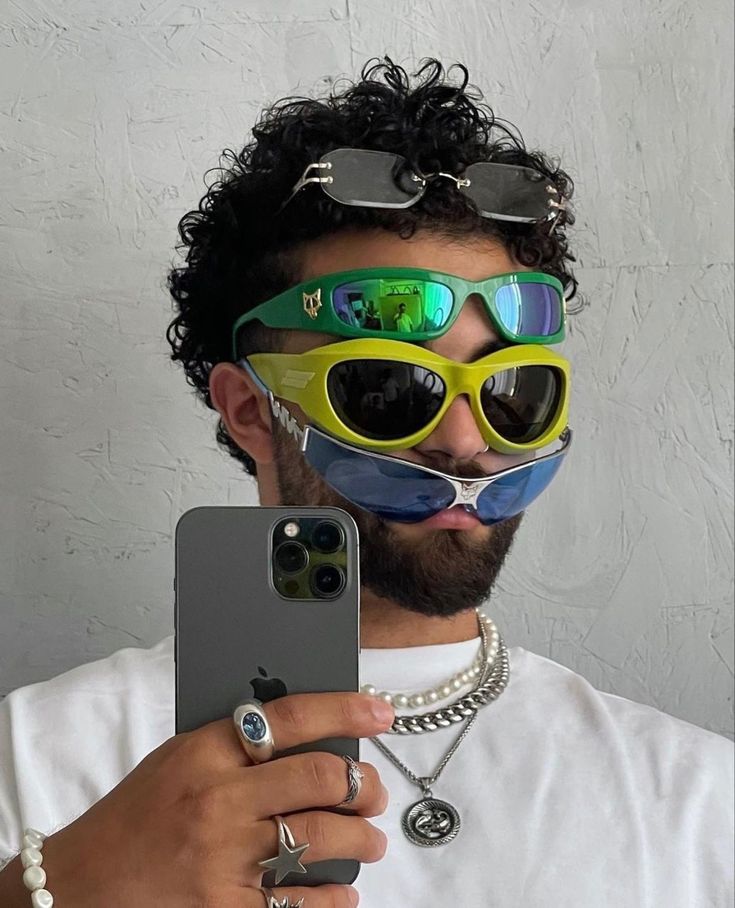 The wrap around sunglasses (these are definitely your father’s glasses) are having their moment. Don’t fear having to sport them à la Adam Sandler; these vintage frames are a favorite of the Y2k crowd but remain decidedly futuristic.