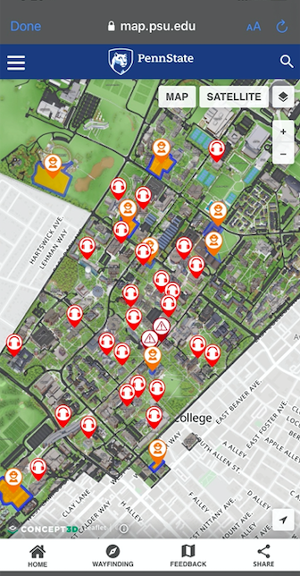 To find more study room options you can visit your Penn State Go app. First, select the maps icon. Next, click the three lines, or “hamburger” menu, at the top left and select “remote learning rooms.” In doing so, all of Penn State’s available study rooms, which includes unused classrooms, will appear on the map. Penn State Go lists available rooms and specific social distancing capacities for each.